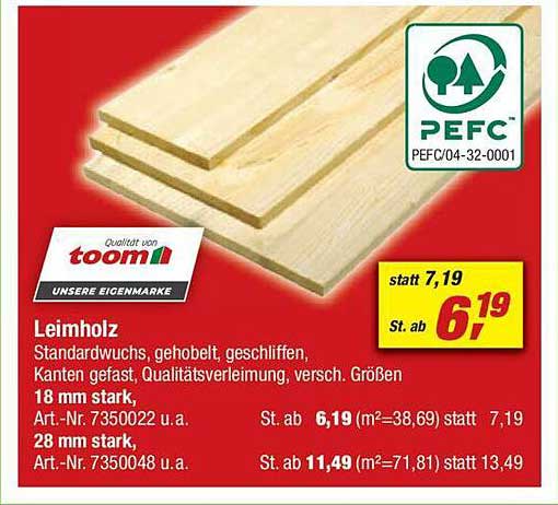 Sehen Sie sich das Leimholz Angebot bei toom Baumarkt an! Dieses fantastische Angebot ist jetzt im neuesten toom Baumarkt Prospekt verfügbar. Nutzen Sie diese Chance und sparen Sie viel bei Ihrem Einkauf.