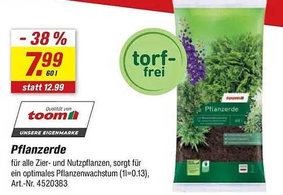 Entdecken Sie die hochwertige Pflanzerde, die sich perfekt für alle Zier- und Nutzpflanzen eignet. Diese Erde unterstützt das optimale Pflanzenwachstum und stellt sicher, dass Ihre grünen Begleiter gedeihen. Mit einem attraktiven Rabatt von 38 % ist dieses Angebot eine hervorragende Gelegenheit, die eigene Pflanzenausrüstung aufzufrischen.