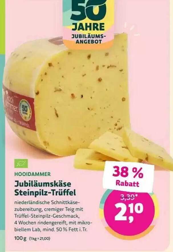 Sehen Sie sich das Hooidammer Jubiläums Käse Steinpilz-Trüffel Angebot bei trinkgut an! Dieses fantastische Angebot ist jetzt im neuesten trinkgut Prospekt verfügbar. Nutzen Sie diese Chance und sparen Sie viel bei Ihrem Einkauf.