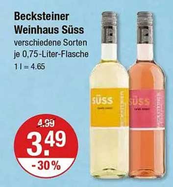 Sehen Sie sich jetzt das Becksteiner Weinhaus Süß - 0,75-Liter-Flasche Angebot im V-Markt Prospekt an. Dieses Angebot ist gültig von 09.10.2025 bis 15.10.2025.