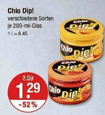 Entdecken Sie den unwiderstehlichen Chio Dip! in verschiedenen köstlichen Sorten. Dieses Angebot ist nicht nur preiswert, sondern auch perfekt für gesellige Abende oder als Snack für zwischendurch. Ob zu Chips, Gemüsesticks oder als Brotaufstrich - Chio Dip! bringt das gewisse Etwas auf Ihren Tisch.
