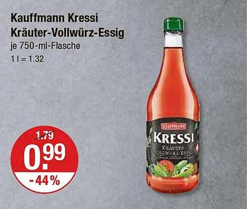 Sehen Sie sich jetzt das Kauffmann Kressi Kräuter-Vollwürz-Essig 750 ml Angebot im V-Markt Prospekt an. Dieses Angebot ist gültig von 06.11.2025 bis 12.11.2025.