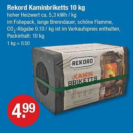 Diese Woche bieten wir Ihnen die Rekord Kaminbriketts im 10 kg Sack zum unschlagbaren Preis von nur 4,99 € an. Mit einem hohen Heizwert von ca. 5,3 kWh/kg sind diese Briketts die ideale Wahl für alle, die an kalten Tagen eine wohlige Wärme in ihrem Zuhause genießen möchten. Besonders die lange Brenndauer sorgt dafür, dass Sie nicht ständig nachlegen müssen, sodass Sie mehr Zeit für Entspannung haben.