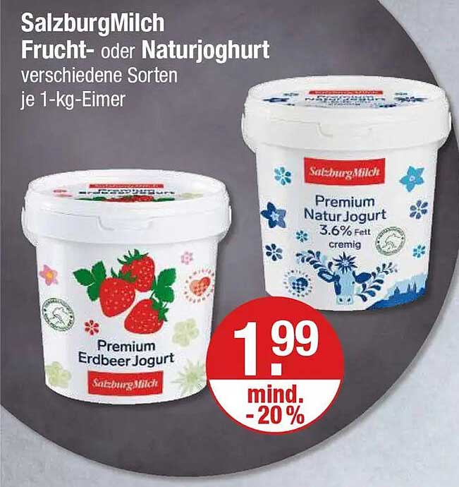 Entdecken Sie den köstlichen SalzburgMilch Frucht- oder Naturjoghurt in verschiedenen Sorten, erhältlich in praktischen 1-kg-Eimern. Dieses Angebot gilt vom 13. November bis zum 19. November 2025 und bietet Ihnen die Möglichkeit, hochwertige Joghurtprodukte zu einem attraktiven Preis zu genießen. Ideal für ein gesundes Frühstück, als Snack für zwischendurch oder als Zugabe zu Ihren Lieblingsdesserts.