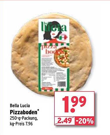 Mit einem aktuellen Preis von 1,99 € im Vergleich zu 2,49 € beim Normalpreis, bietet Ihnen der Bella Lucia Pizzaboden eine attraktive Ersparnis von 0,50 €. Dadurch wird das Angebot ideal für Sparfüchse und Genussliebhaber, die auf Qualität nicht verzichten möchten.