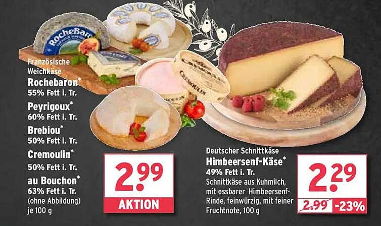 Der reguläre Preis für diesen Käse liegt bei 2,99 €. In der aktuellen Aktion können Sie ihn jedoch für nur 2,29 € erwerben. Dies bedeutet eine Ersparnis von 23 %, was dieses Angebot besonders attraktiv macht.