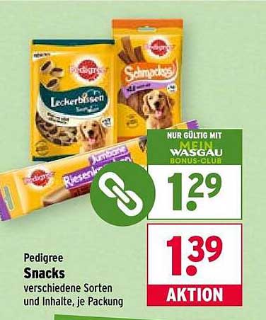 Sehen Sie sich jetzt das Pedigree Snacks – Verschiedene Sorten und Inhalte, je Packung Angebot im Wasgau Prospekt an. Dieses Angebot ist gültig von 20.10.2025 bis 25.10.2025.