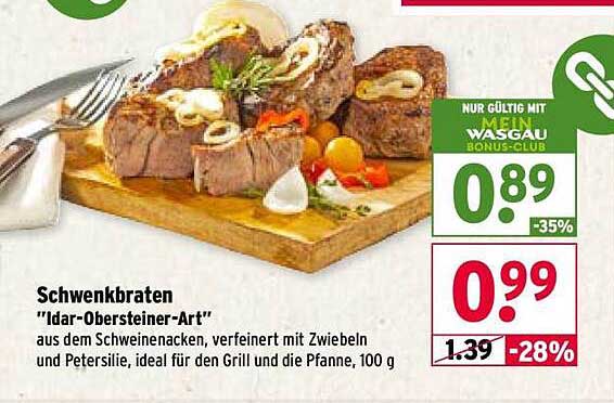 Der aktuelle Angebotspreis von €0,99 ermöglicht Ihnen eine Ersparnis von 28 % im Vergleich zum regulären Preis von €1,39. Das ist eine tolle Gelegenheit, um hochwertigen Schwenkbraten zu einem unschlagbaren Preis zu erwerben und Ihre Grillabende zu bereichern!