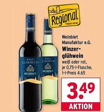 Mit einem Preis von nur 3,49 Euro für die 0,75-l-Flasche (1-l-Preis: 4,65 Euro) genießen Sie ein hervorragendes Angebot. Der Ersparnis gegenüber dem Normalpreis macht den Winzer-Glühwein zu einem unschlagbaren Deal und ermutigt, gleich mehrere Flaschen für Ihre nächsten Feierlichkeiten zu besorgen.
