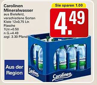 Sehen Sie sich jetzt das Carolinien Mineralwasser aus Bielefeld, verschiedene Sorten, Kiste 12 x 0,75 Ltr. Flasche Angebot im WEZ Prospekt an. Dieses Angebot ist gültig von 14.04.2025 bis 19.04.2025.