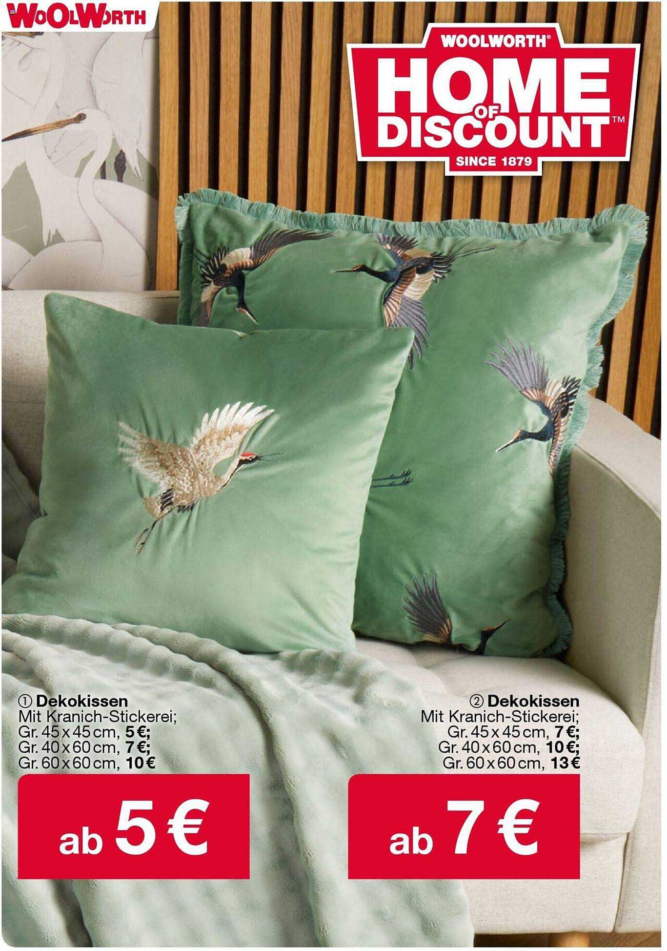 Sehen Sie sich jetzt das Dekokissen Mit Kranich-Stickerei Angebot im Woolworth Prospekt an. Dieses Angebot ist gültig von 30.09.2024 bis 05.10.2024.