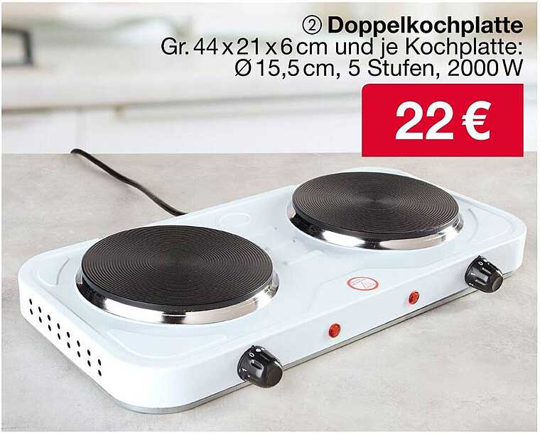 Diese hochwertige Doppelkochplatte besitzt zwei Kochfelder mit einem Durchmesser von 15,5 cm und einer Gesamtleistung von 2000 W. Das langlebige Design garantiert eine gleichmäßige Wärmeverteilung, sodass Ihre Speisen stets perfekt gegart werden. Mit einem geringen Gewicht und einem kompakten Format ist sie zudem leicht zu transportieren und zu verstauen.