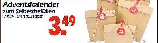 Der Preis für den Adventskalender beträgt nur 3,49 €. Im Vergleich zu vielen gekauften Adventskalendern, die oft weniger individuell und persönlicher sind, sparen Sie hier nicht nur Geld, sondern auch den Kauf von Massenware. Gestalten Sie Ihr eigenes Adventserlebnis und kreieren Sie Erinnerungen, die lange bleiben.