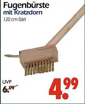 Sehen Sie sich jetzt das Fugenbürste mit Kratzdorn 120 cm-Stiel Angebot im Wreesmann Prospekt an. Dieses Angebot ist gültig von 27.10.2025 bis 01.11.2025.
