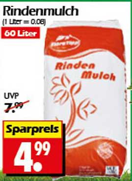 Das aktuelle Angebot bietet Ihnen die Möglichkeit, Rindenmulch zum Sparpreis von nur 4,99 € zu erwerben, anstelle des üblichen Preises von 7,99 €. Ein klarer Vorteil, der nicht nur Ihren Geldbeutel schont, sondern auch Ihre Gartenprojekte voranbringt!