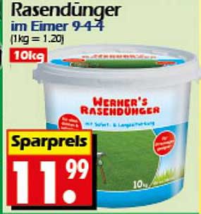 Sehen Sie sich jetzt das Werner's Rasendünger im Eimer 9-4-4 (10kg) Angebot im Wreesmann Prospekt an. Dieses Angebot ist gültig von 14.04.2025 bis 19.04.2025.