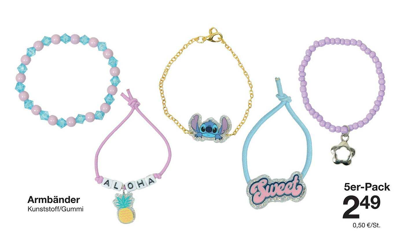 Sehen Sie sich jetzt das Armbänder 5er-Pack - Kunststoff/Gummi Angebot im Zeeman Prospekt an. Dieses Angebot ist gültig von 17.05.2025 bis 23.05.2025.