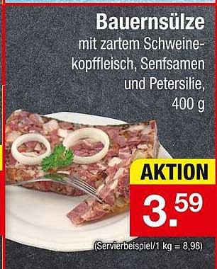 Sehen Sie sich jetzt das Bauernsülze mit zartem Schweinekopf Fleisch, Senfsamen und Petersilie, 400 g Angebot im Zimmermann Prospekt an. Dieses Angebot ist gültig von 06.10.2025 bis 11.10.2025.