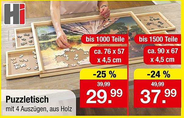 Sehen Sie sich jetzt das Puzzletisch mit 4 Auszügen aus Holz Angebot im Zimmermann Prospekt an. Dieses Angebot ist gültig von 15.09.2025 bis 20.09.2025.