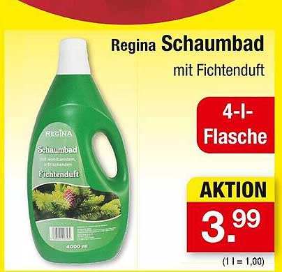 Sehen Sie sich jetzt das Regina Schaumbad mit Fichtenduft Angebot im Zimmermann Prospekt an. Dieses Angebot ist gültig von 27.10.2025 bis 01.11.2025.