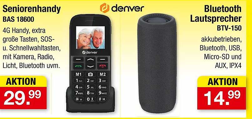 Sehen Sie sich jetzt das Seniorenhandy BAS 18600 von Denver Angebot im Zimmermann Prospekt an. Dieses Angebot ist gültig von 22.04.2025 bis 26.04.2025.