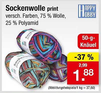 Der ursprüngliche Preis für dieses hochwertige Produkt liegt bei 2,99 Euro. Durch unsere aktuelle Aktion sparen Sie 37 % und erhalten die Sockenwolle jetzt für nur 1,88 Euro! Das ist eine hervorragende Gelegenheit, Ihren Wollvorrat aufzufüllen oder neue Projekte zu starten.