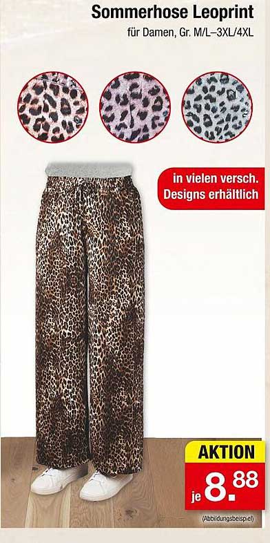 Sehen Sie sich jetzt das Sommerhose Leoprint für Damen, Gr. M/L–3XL/4XL Angebot im Zimmermann Prospekt an. Dieses Angebot ist gültig von 02.06.2025 bis 07.06.2025.