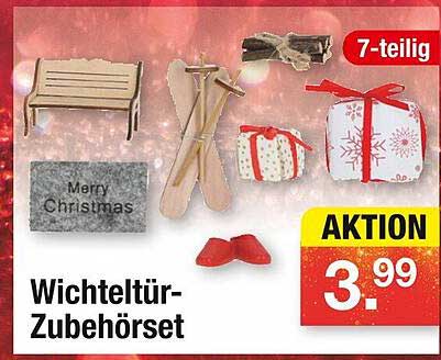 Sehen Sie sich jetzt das Wichteltür-Zubehörset 7-teilig Angebot im Zimmermann Prospekt an. Dieses Angebot ist gültig von 27.10.2025 bis 01.11.2025.