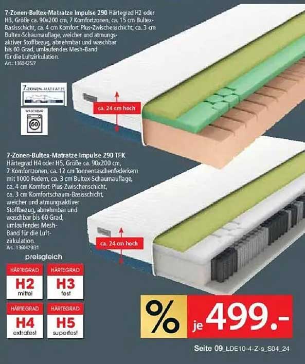 Der reguläre Preis für diese hochwertige Matratze liegt bei 499,00 €. Aktuell erhalten Sie die 7-Zonen-Bultex-Matratze Impulse 290 also zu einem unschlagbaren Preis von nur 499,00 €. Profitieren Sie von dieser großartigen Ersparnis und gönnen Sie sich besseren Schlaf zu einem fairen Preis!