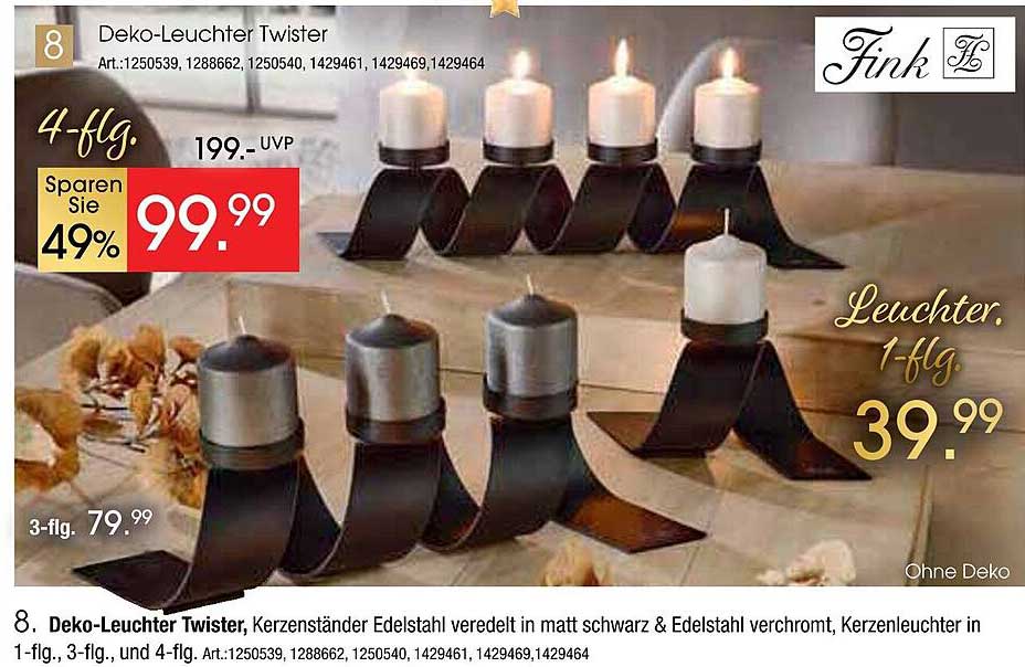 Sehen Sie sich jetzt das Deko-Leuchter Twister 4-flg. – Kunstvolle Lichtakzente für Ihr Zuhause Angebot im Zurbrüggen Prospekt an. Dieses Angebot ist gültig von 11.10.2025 bis 15.11.2025.