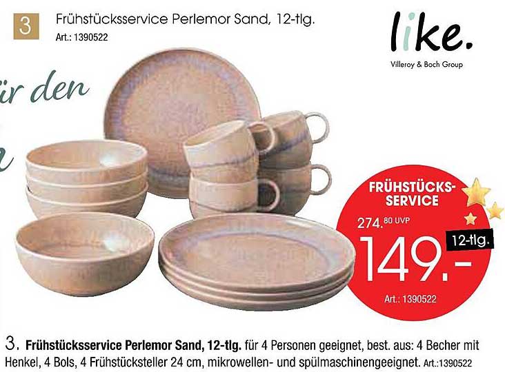 Sehen Sie sich jetzt das Frühstücksservice Perlemo Sand, 12-tlg. Angebot im Zurbrüggen Prospekt an. Dieses Angebot ist gültig von 11.10.2025 bis 15.11.2025.