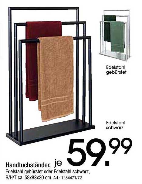 Sehen Sie sich jetzt das Handtuchständer, Edelstahl gebürstet oder schwarz Angebot im Zurbrüggen Prospekt an. Dieses Angebot ist gültig von 13.09.2025 bis 20.09.2025.