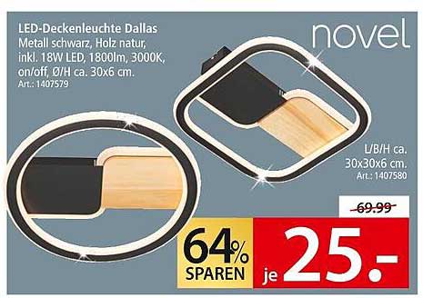 Der reguläre Preis der LED-Deckenleuchte Dallas liegt bei 69,99 Euro, aber auf dieser Seite erhalten Sie sie für nur 25 Euro! Das Angebot gilt vom 1. November bis zum 8. November 2025. Damit sparen Sie nicht nur Geld, sondern investieren auch in Qualität und Design.