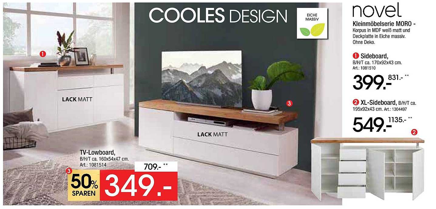 Der reguläre Preis von 709 € wird hier im Angebot auf nur 349 € reduziert. Das bedeutet, dass Sie großzügige 50 % sparen können! Diese Ersparnis macht das Lowboard zu einer ausgezeichneten Wahl für alle, die stilvolles Wohnen mit einem attraktiven Preis-Leistungs-Verhältnis verbinden möchten.